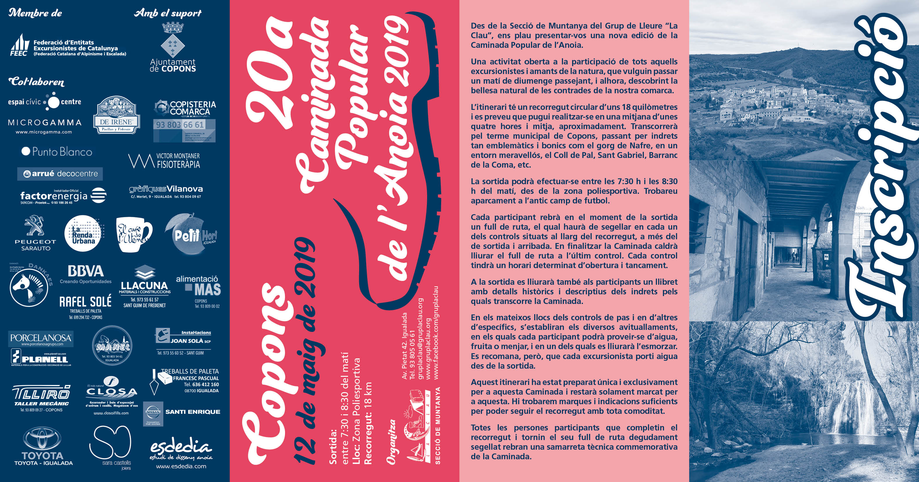 20ª Caminada Popular de l’Anoia a Copons, el 12 de maig
