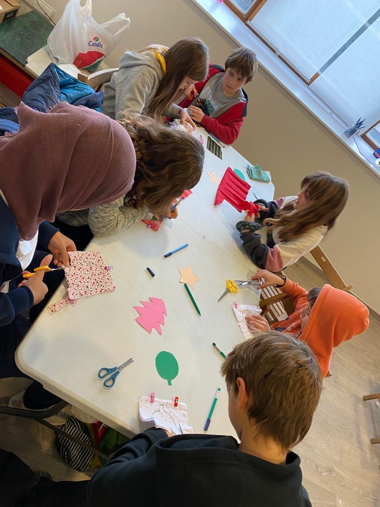 L’Ajuntament els va oferir participar al taller d’arbres de Nadal amb roba reciclada, amb el suport de la Diputació de Barcelona, i un total de 29 nens i nenes de les classes de mitjans i grans en prengueren part.