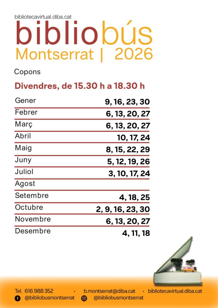 Calendari del Bibliobús Montserrat a Copons
