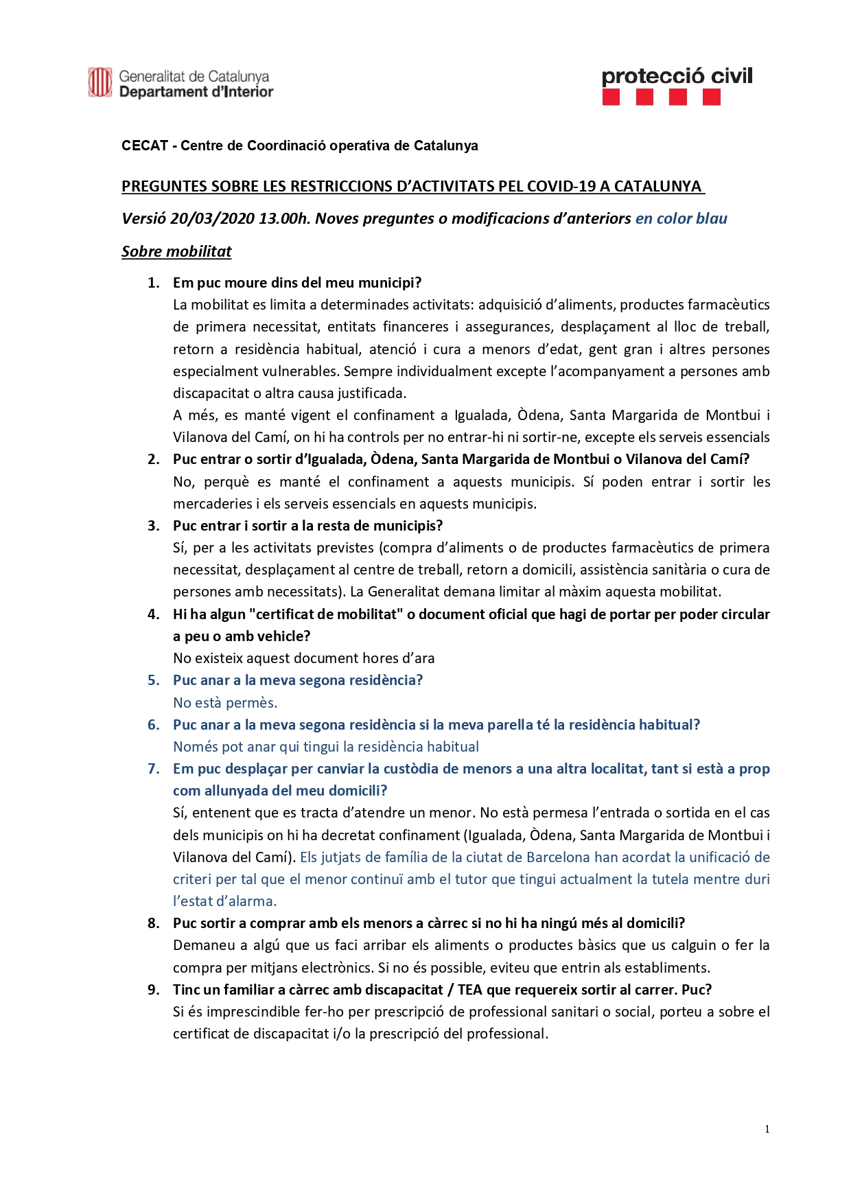 Versió 20/03/2020 13.00h. Noves preguntes o modificacions d’anteriors en color blau