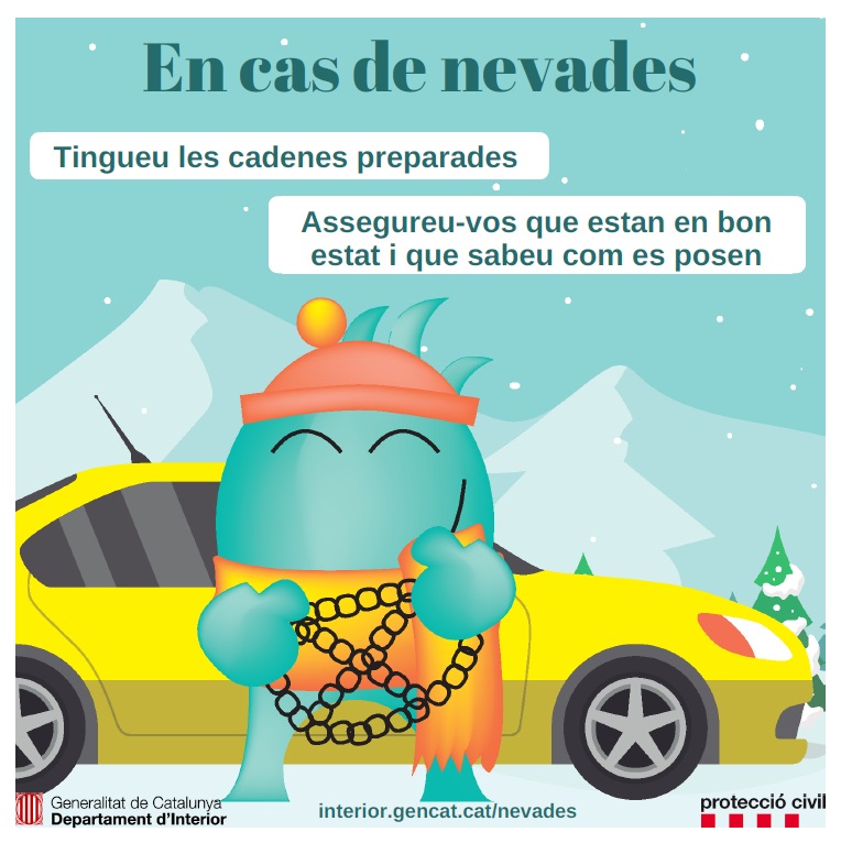 Disposeu de cadenes en bon estat, llanterna i manta de viatge.