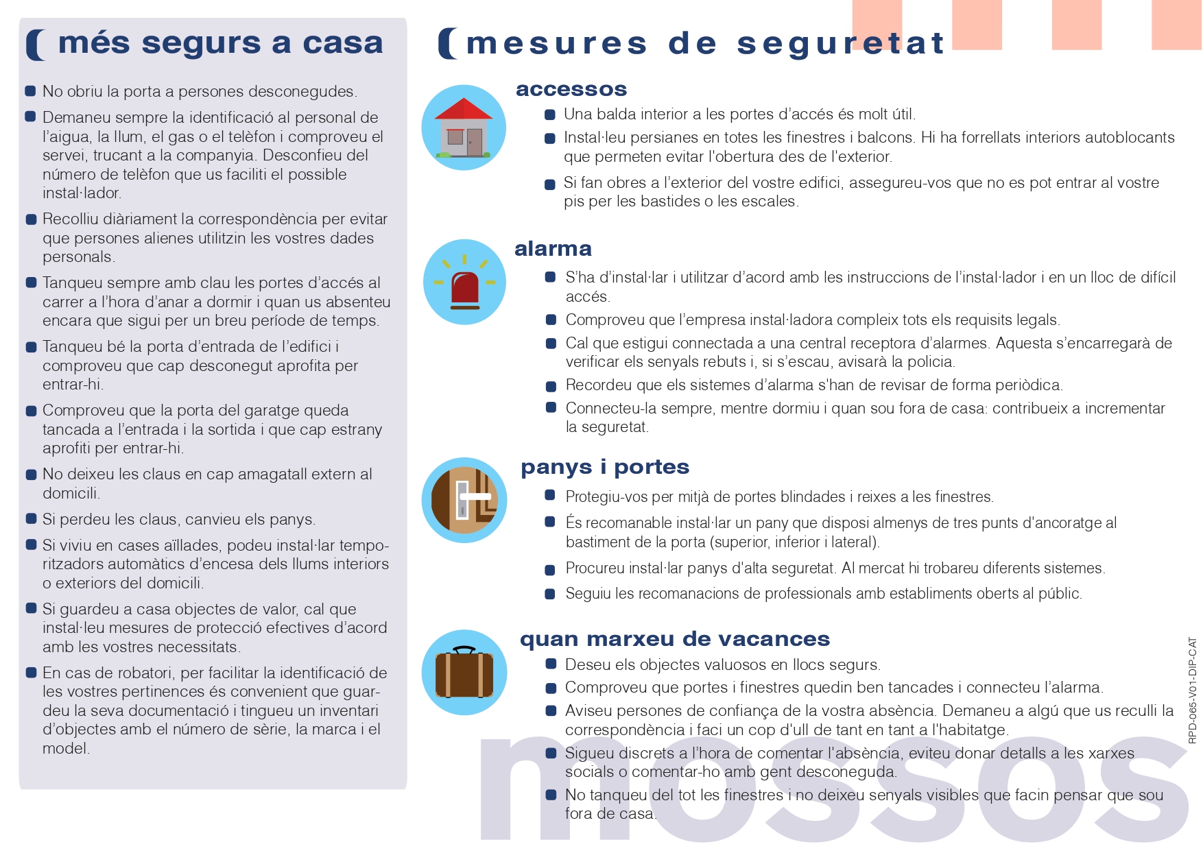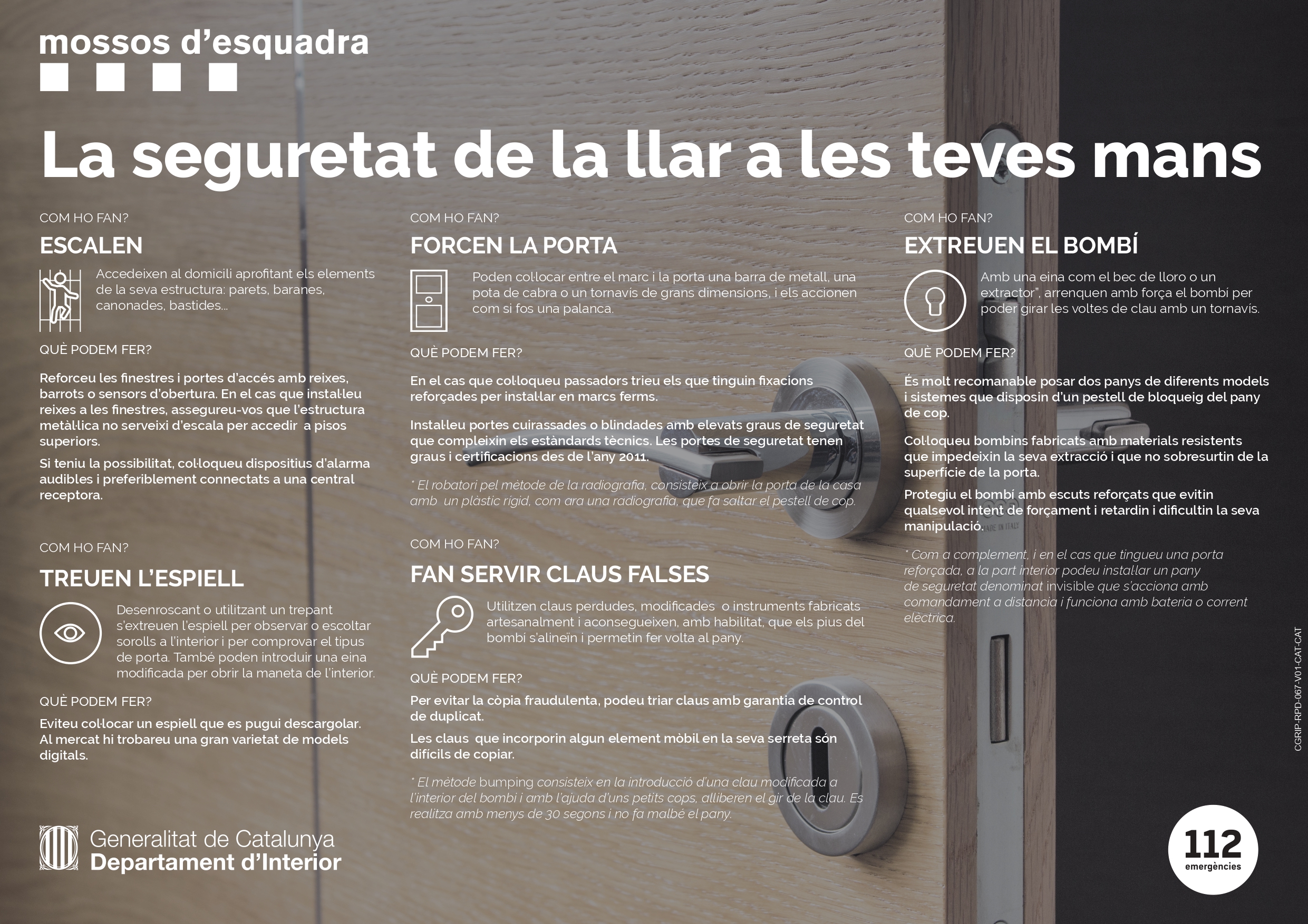 Els Mossos d’Esquadra ens faciliten una sèrie de consells i recomanacions per evitar possibles robatoris: