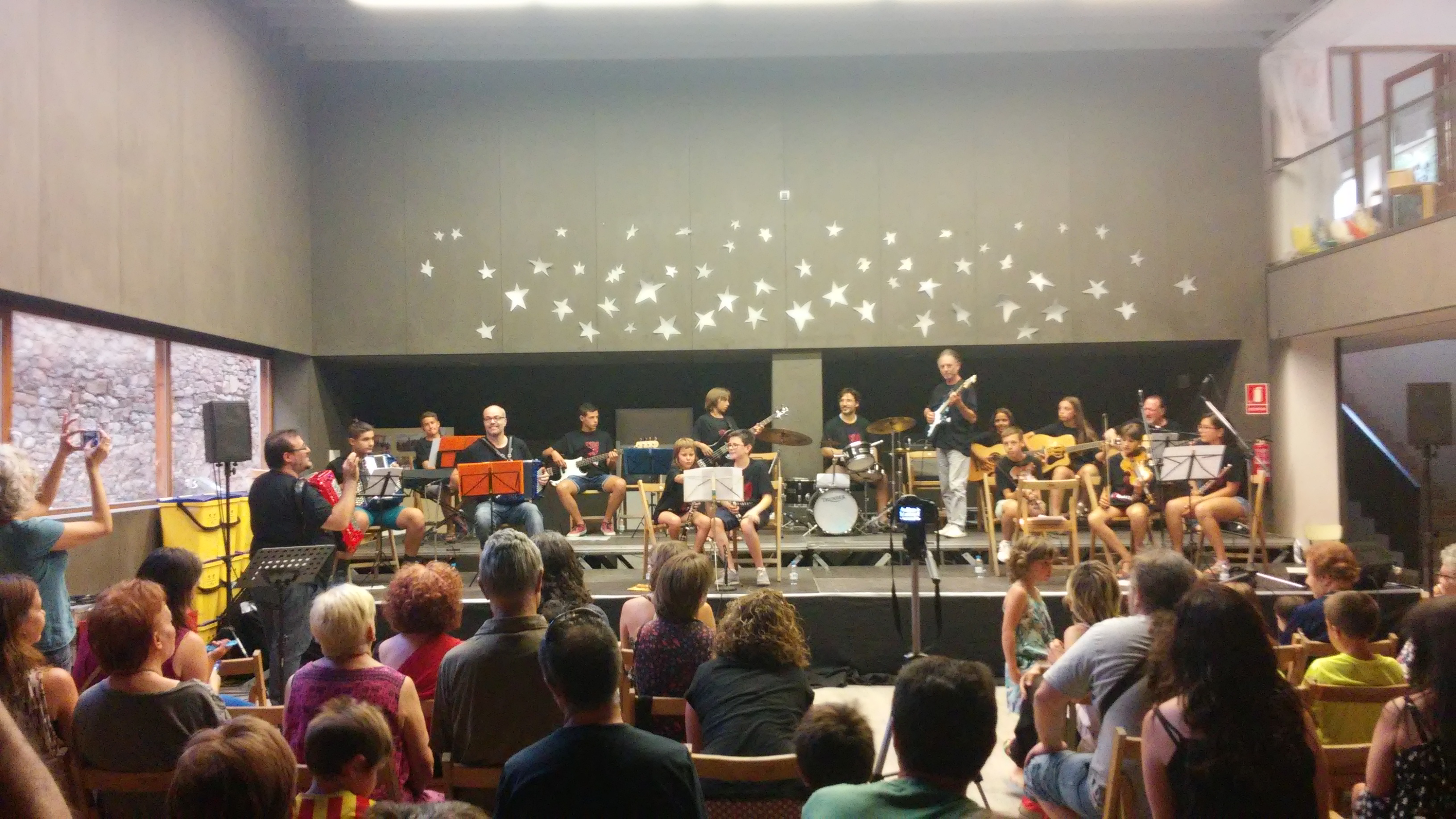 El passat dilluns 9 de juliol la Big Band de Copons va oferir una audició de final de curs per posar fi a la primera temporada d’aquesta nova orquestra formada per catorze músics d’edats diverses i un variat assortit d’instruments.