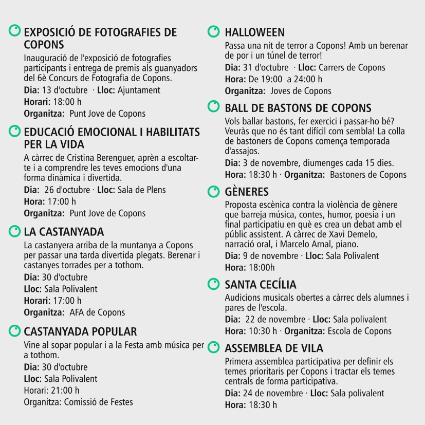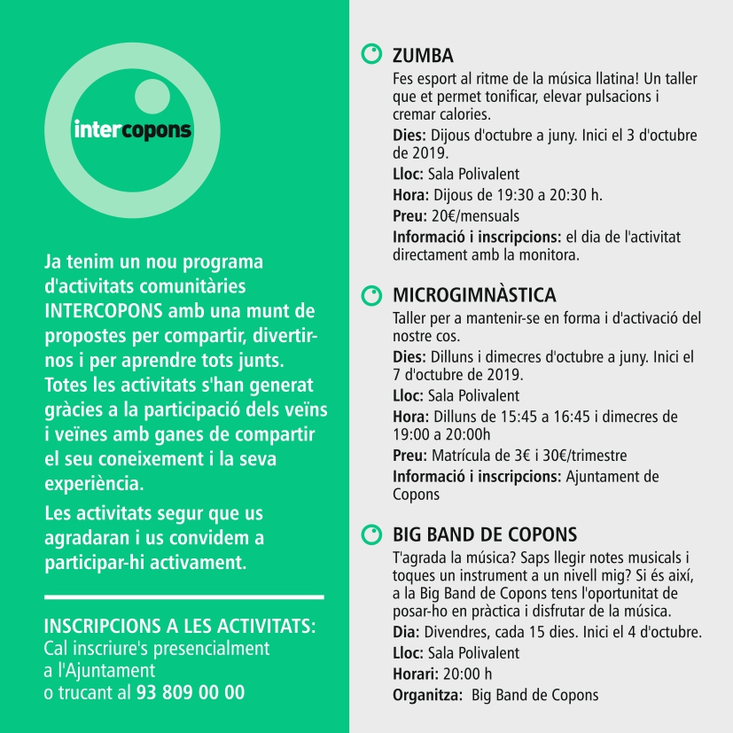 InterCopons tardor/hivern 2019, nou programa d’activitats