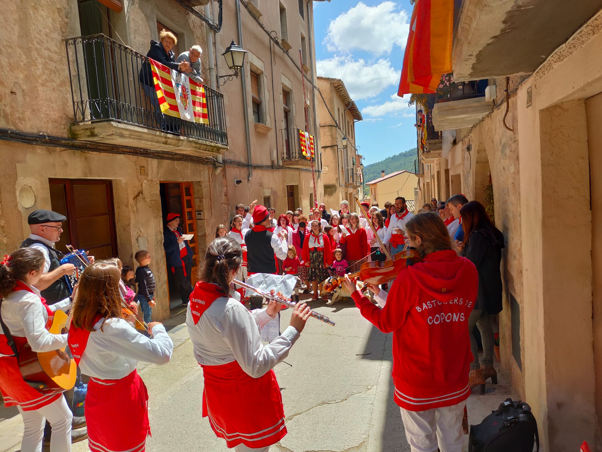 Diumenge passat va tenir lloc la tradicional cantada de caramelles, una cinquantena de caramellaires i bastoners van recorrer durant tot el matí el poble de Copons, aturant-se en diferents indrets per fer les cantades, ballar bastons i oferir les roses als que van sortir als balcons. Enguany totes les aportacions han anat destinades a ajudar el poble Ucraïnès.