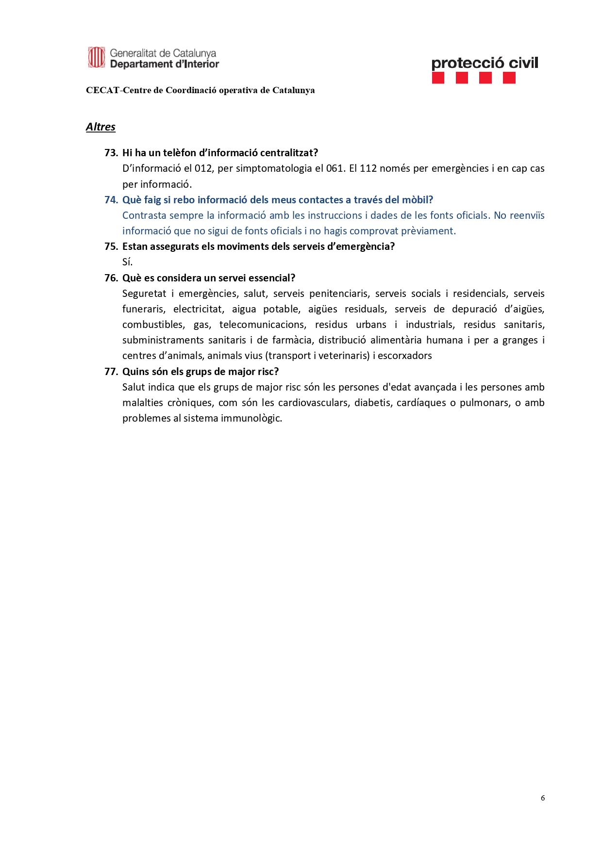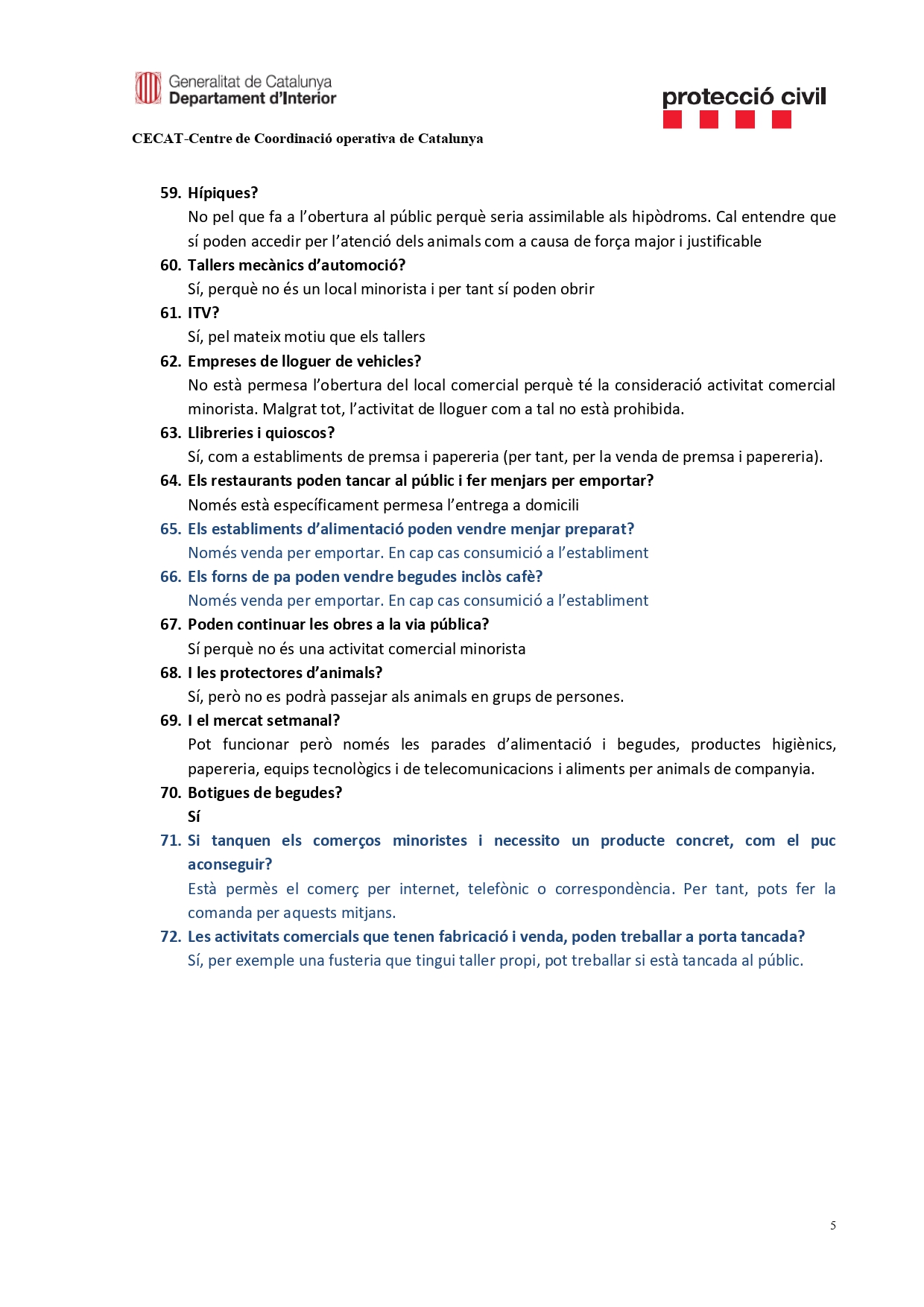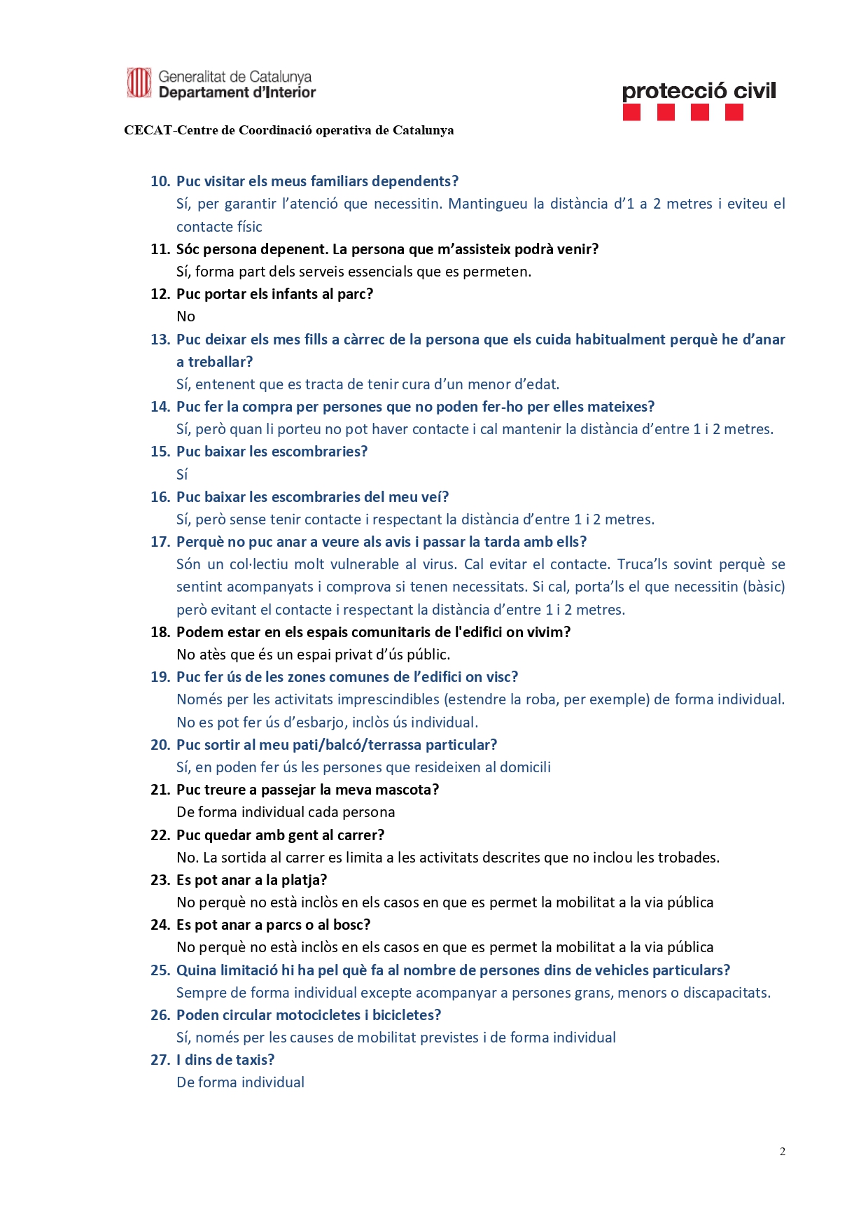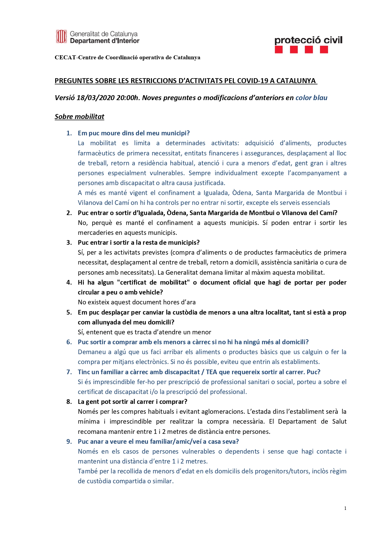 Recordeu les restriccions de les activitats pel COVID-19 de Protecció Civil-Generalitat de Catalunya